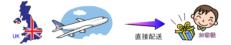 ●個人輸入の通常は、イギリス(UK)から日本のお客様へ直接配送します。